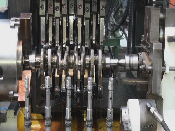 一.  QH2-042變力曲軸圓角滾壓及滾壓校直機(jī)床(發(fā)明專利號(hào)1823602)是與武漢理工大學(xué)共同開發(fā)的一款高檔數(shù)控設(shè)備。該機(jī)床為九鉗直立布置,可以一次性對(duì)所有四缸曲軸完成的變力滾壓,自動(dòng)檢測(cè)和自動(dòng)滾壓校直的加工。該機(jī)床帶有測(cè)力器,自動(dòng)檢測(cè)工件零位,自動(dòng)檢測(cè)記錄工件加工情況和滾輪破碎自動(dòng)檢測(cè)等功能,可以完全保證工件的加工質(zhì)量。具備與著名德國(guó)的圓角滾壓設(shè)備制造商Hegenscheidt公司產(chǎn)品同樣的功能,具有極高的性價(jià)比。